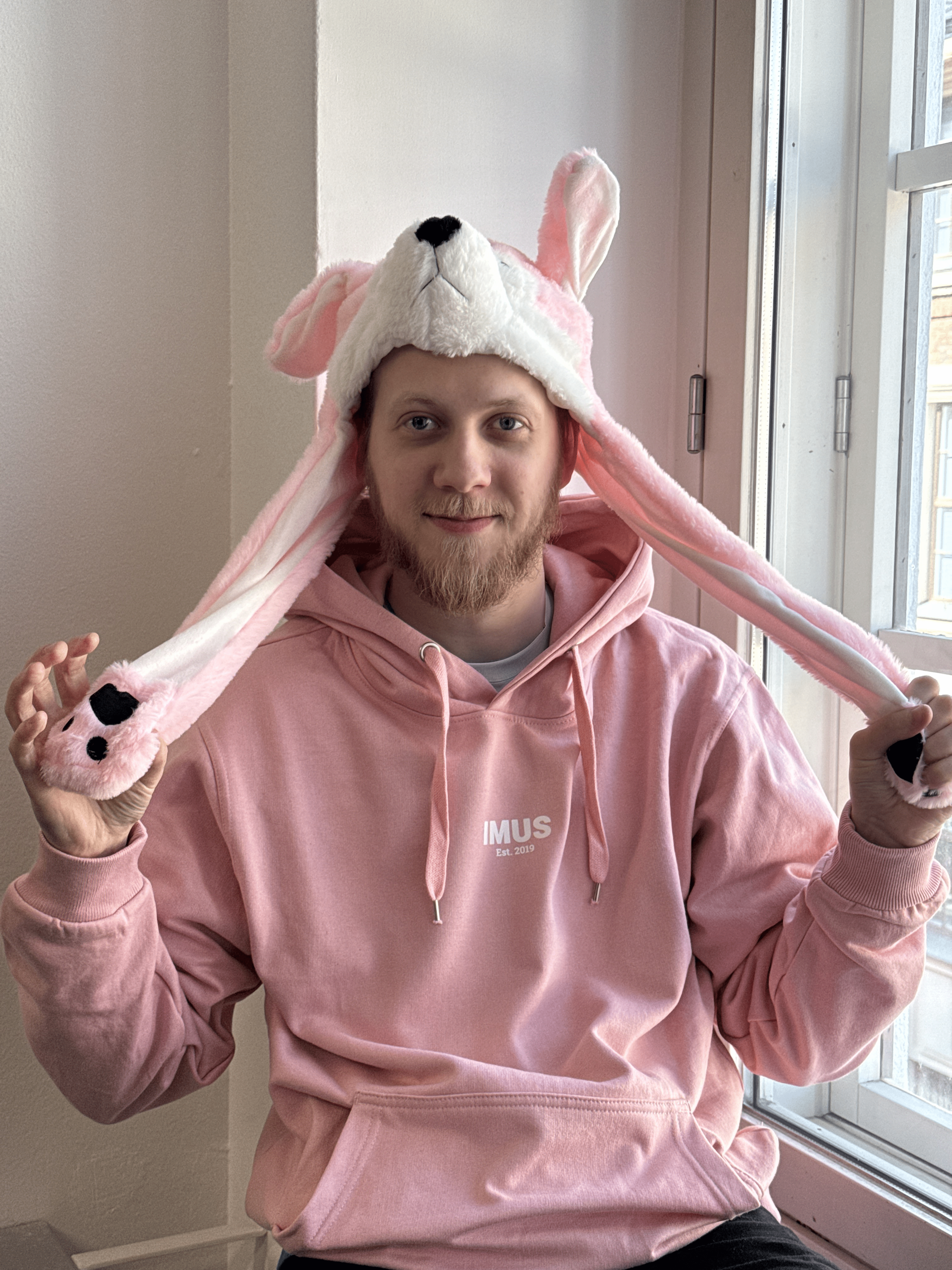 Erittäin laadukas 350g/m2 huppari kengurutaskulla ja metalliviimeistellyillä hupparinaruilla. Materiaali 65% kammattua puuvillaa, 35% polyesteriä.