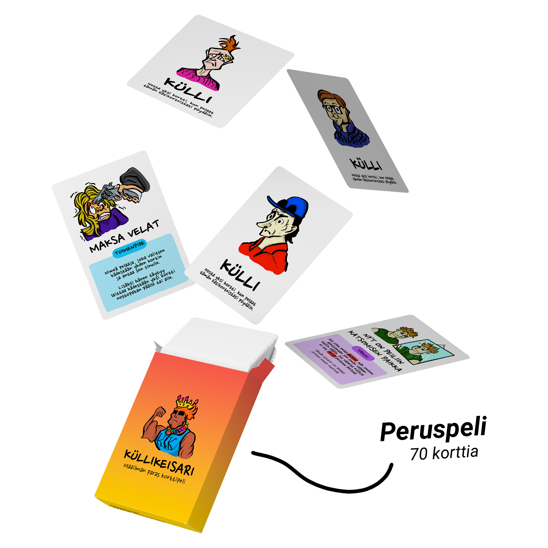 Peruspeli: Küllikeisari on seurapeli, joka loistaa mökki-illoissa ja hyvässä seurassa. Tämä on kenties ainoa peli, jonka pelaaminen on yhtä hauskaa myös ilman alkoholia. Solmitpa liittoja muiden pelaajien kanssa tai et, voit olla varma siitä, että tunteet nousevat hetkessä pintaan ja alat kyseenalaistamaan kaverisuhteitasi. Kerää Külleja, suojele niitä muilta pelaajilta ja taistele tiesi Küllikeisariksi!